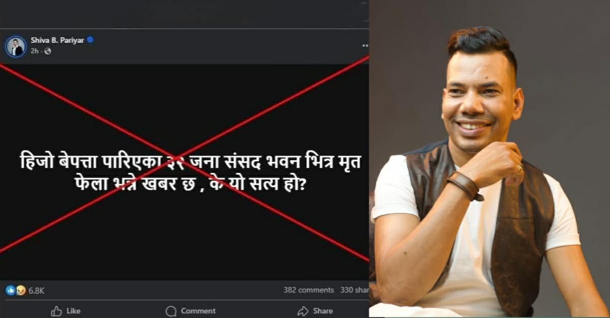 यसै सन्दर्भमा, भाद्र २४ गते सामाजिक सञ्जालमा “बेपत्ता पारिएका ३२ जना संसद भवनभित्र मृत फेला” भन्ने पोस्ट मैले पटक–पटक देखेपछि, उक्त विषयको सत्यता बुझ्ने उद्देश्यले एउटा जिज्ञासामूलक पोस्ट लेखेको थिएँ। मेरो पोस्ट अक्षरशः यस्तो थियो: “हिजो बेपत्ता पारिएका ३२ जना संसद भवनभित्र मृत फेला भन्ने खबर छ, के यो सत्य हो?”